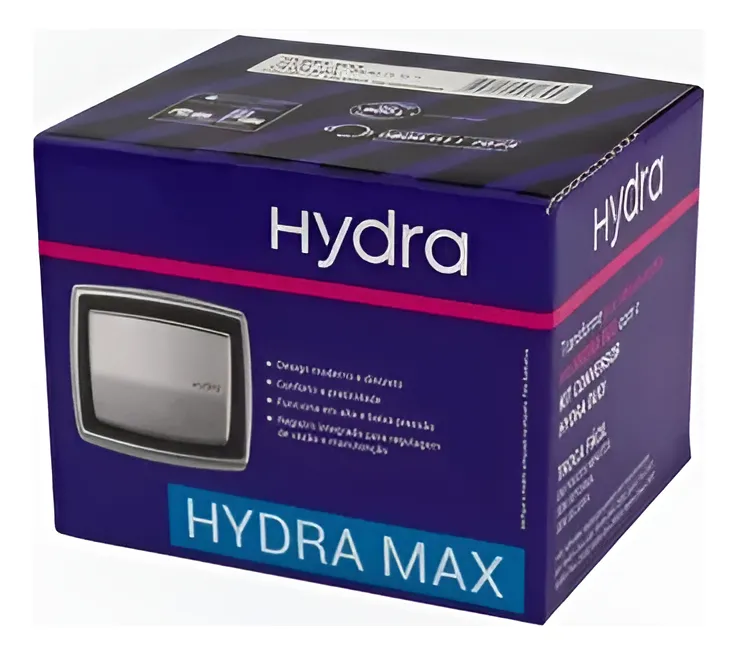 A Hydra Max tem design consagrado. Qualidade e durabilidade que fazem do sistema Hydra a melhor opção para sua residência. Especificações do produto Pode ser instalada em qualquer bacia convencional Possui regulagem de vazão Linha do produto: Hydra Max Pressão mínima de entrada de água (mca): 2 MCA Pressão máxima de entrada de água (mca): 40 MCA Indicação de uso: Residencial Altura: 96 mm Largura: 107 mm Comprimento: 48 mm Peso: 1.077 Composição Básica: Liga de Cobre (bronze e latão) Plásticos de Engenharia Elastômeros Número Norma / Decreto: NBR-15857