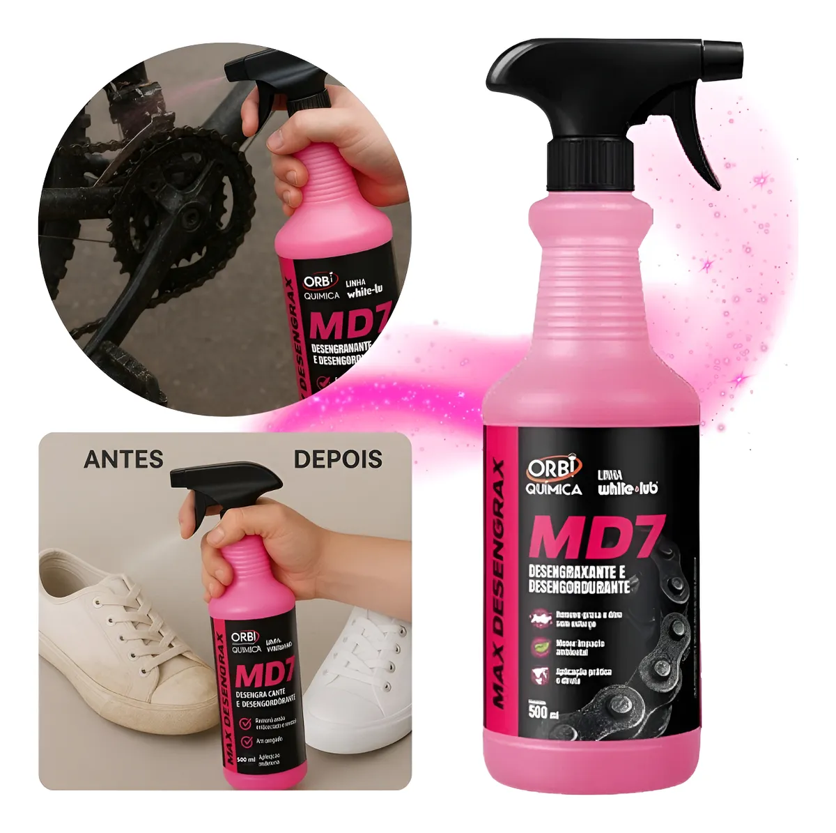 O Desengraxante Orbi 500ml (MD7) é um produto multiuso de limpeza pesada, ideal para remover graxa, óleo e sujeiras incrustadas em diversas superfícies metálicas, automotivas, industriais e domésticas, sendo seguro para metais e podendo ser usado puro ou diluído para maior economia e versatilidade, proporcionando limpeza profunda e resultado profissional rapidamente.