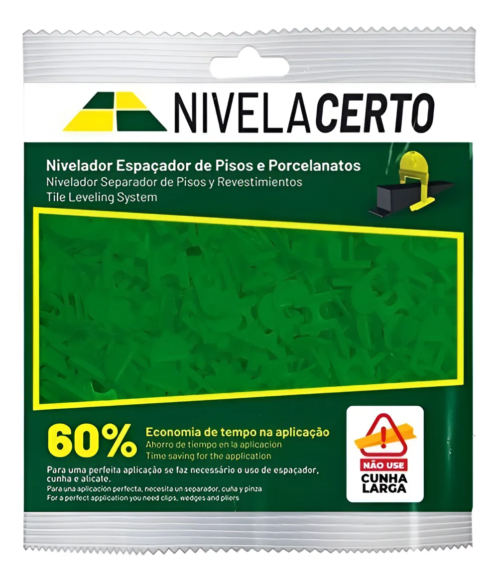 nivelador, que age como um calço mantendo a superfície alinhada durante a cura da argamassa