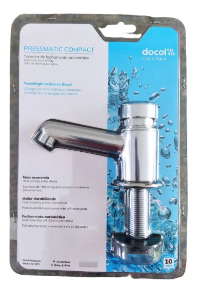 Essa torneira para banheiro da linha PressMatic®oferece um produto mais econômico, compacto e funcional. Com um design mais simples e formato menor, essa opção é perfeita para ambientes com alta circulação de pessoas, visto que o fechamento é automático após seis segundos. Como a torneira possui bica baixa, sua instalação deve ser feita em cubas embutidas ou semi-embutidas, por exemplo. A distância entre a torneira e a cuba garante que a água não respingue, tornando o consumo desconfortável. Por isso produtos com bica baixa sempre serão indicados para esses tipos de louça. Ela encaixa em bitolas ½” e funciona em pressões altas e baixas. Suporta temperaturas de até 40°C em perfeito funcionamento, com Garantia Toda Vida. Acabamento duradouro Acabamento cromado biníquel de alta durabilidade e maior resistência à corrosão. Conserva a beleza e o brilho do produto por muito mais tempo Higiene com segurança A tecnologia PressMatic® proporciona o acionamento da água de maneira simples e rápida, basta pressionar um único botão. Com o objetivo de entregar produtos economizares, todos possuem fechamento automático após trinta segundos de uso. Fechamento automático O funcionamento por meio da tecnologia hidromecânica nada mais é que a junção da água com a mola para fazer o produto funcionar. É a mola que auxilia na vedação do sistema e depois a água é responsável por finalizar o fechamento evitando que o produto fique aberto. Ou seja, se tem água chegando no produto ele irá fechar. Praticidade com economia A tecnologia PressMatic® proporciona o acionamento da água de maneira simples e rápida, basta pressionar um único botão. Com o objetivo de entregar produtos economizadores, todos possuem fechamento automático de fábrica após 6 segundos de uso. Maior durabilidade Possui vida útil prolongada, ultrapassando 200.000 ciclos, 2x mais que o exigido em norma. Além do corpo em liga de latão, que garante maior resistência mecânica. Sua sede é anticorrosiva e produzida com polímero de alta performance, proporcionando maior resistência ao cloro presente na água. Características Gerais do Produto: Local de Instalação: Bancada Fabricante: Docol Cor: Croamdo Indicação de uso: Banheiros e lavabos .